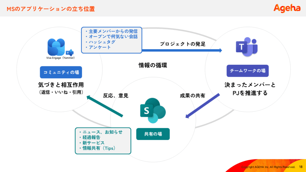 コミュニティの場はViva Engageに任せ、SharePointは「会話のきっかけ(ネタ)」を提供する場と捉える視点が大切です。